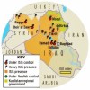 Aperçu de l’étendue de la présence de l’EIIL/EI (ISIS ou ISIL en anglais). Le chef de l’organisation, Abu Bakr-al-Baghdadi, a proclamé la création d’un « califat » qui s’étend des territoires syriens du nord-ouest d’Alep à ceux de l’ouest de l’Irak (Ninive et une partie d’Al-Anbar). En Syrie, de nombreuses villes ont été conquises par l’EI, dont Rakka près de la frontière turco-syrienne où se trouve sa base principale et Deir el-Zor (Nord-Est) qui concentre de nombreux champs pétroliers. Cette manne financière et la prise de matériels lourds à l’armée irakienne ont favorisé son essor spectaculaire ces dernières semaines. En Syrie, l’EI veut asseoir son hégémonie, au détriment des autres groupes rebelles et jihadistes dont son principal rival, le front Al-Nosra, fidèle à Ayman al-Zawahiri (leader numéro un d’Al Qaïda) et qui a perdu le contrôle de plusieurs territoires à cheval entre la Syrie et l’Irak, au terme d’âpres et sanglants affrontements entre jihadistes qui semblent être en voie d’intensification. Carte : GlobalSecurity.org
