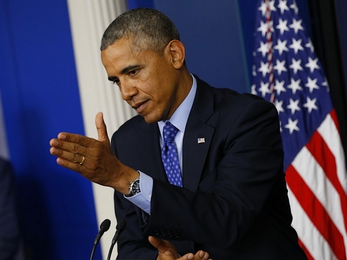 B. Obama est dans l’embarras depuis que la situation en Irak le rattrape. Lors d’un point presse organisé le 19 juin 2014 au cours duquel il a exposé son plan pour l’Irak, le président s’est remarquablement contredit, à la grande stupéfaction de son auditoire. À un journaliste qui lui a demandé s’il regrettait de ne pas avoir laissé une force résiduelle en Irak en 2011, l’intéressé a répondu : « eh bien, gardez à l’esprit que je n’ai pas pris cette décision, elle fut prise par le gouvernement irakien ». Pourtant, en 2012, le président laissait encore entendre un autre son de cloche, s’attribuant le mérite de cette décision. Quand, au cours d’un débat, son adversaire républicain Mitt Romney lui demanda (suite à une phrase du président sortant qui le troubla manifestement) : « Oh, vous ne vouliez donc pas un accord sur le statut des forces en Irak? [nb : ce statut est celui de l’immunité juridique posée comme condition par Washington au maintien d’une force résiduelle en Irak], B.Obama rétorqua : »Non, je n’aurais pas laissé 10 000 hommes là-bas, cela nous aurait liés et ne nous aurait certainement pas aidés au Moyen-Orient ».