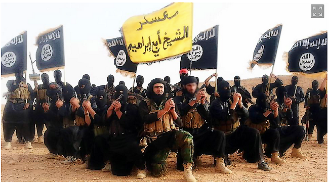 Combattants de l' »État islamique, photographiés dans la province irakienne d’Al Anbar en 2014. À ce jour, ce mouvement incarne sans doute l’avatar paroxystique du fondamentalisme islamiste, sous son jour le plus violent et extrémiste.